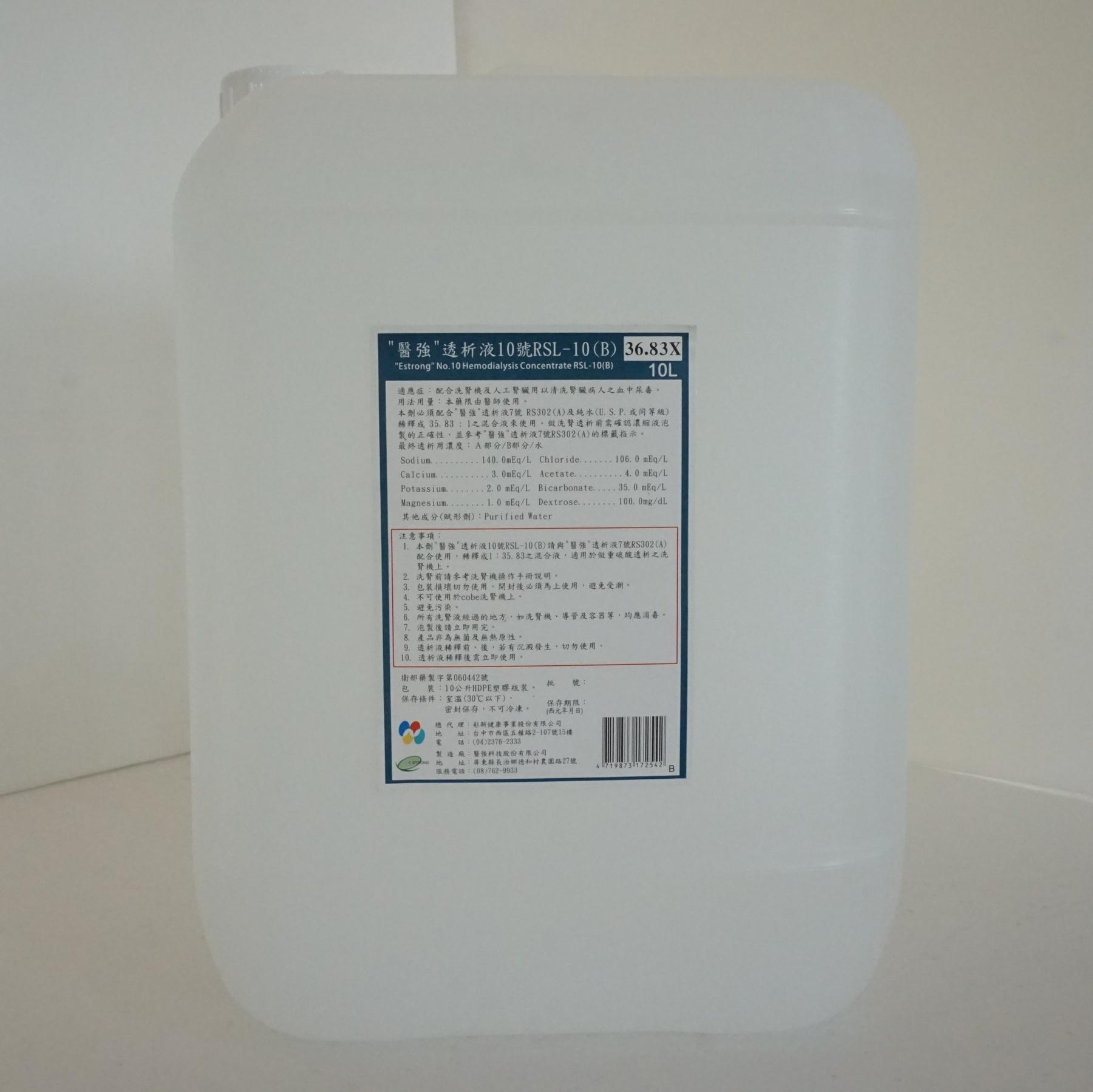 1.本劑”醫強”透析液10RSL-10(B)請與”醫強”透析液7號RS302(A)配合使用。